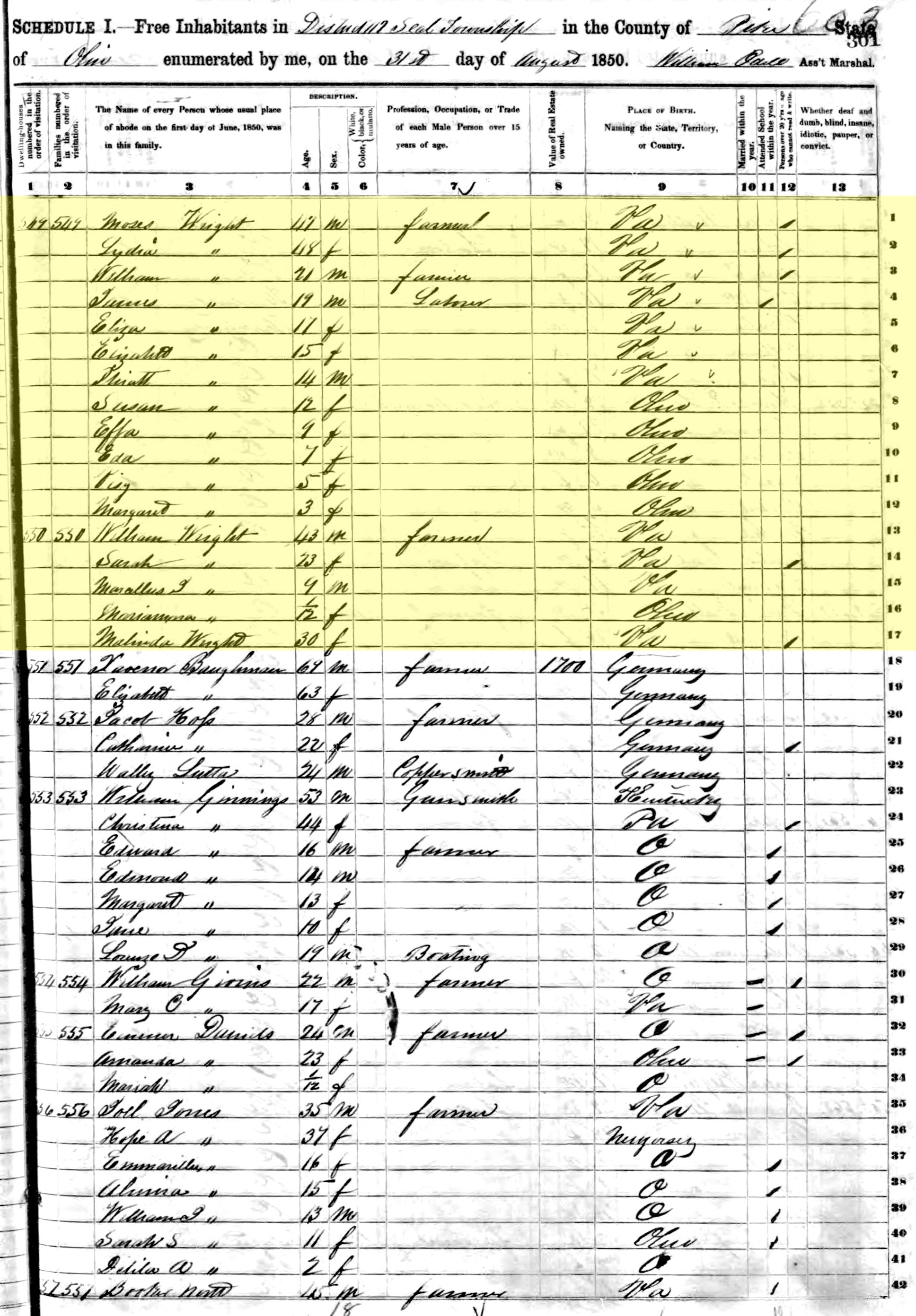 1850 United States Federal Census - Moses Wright