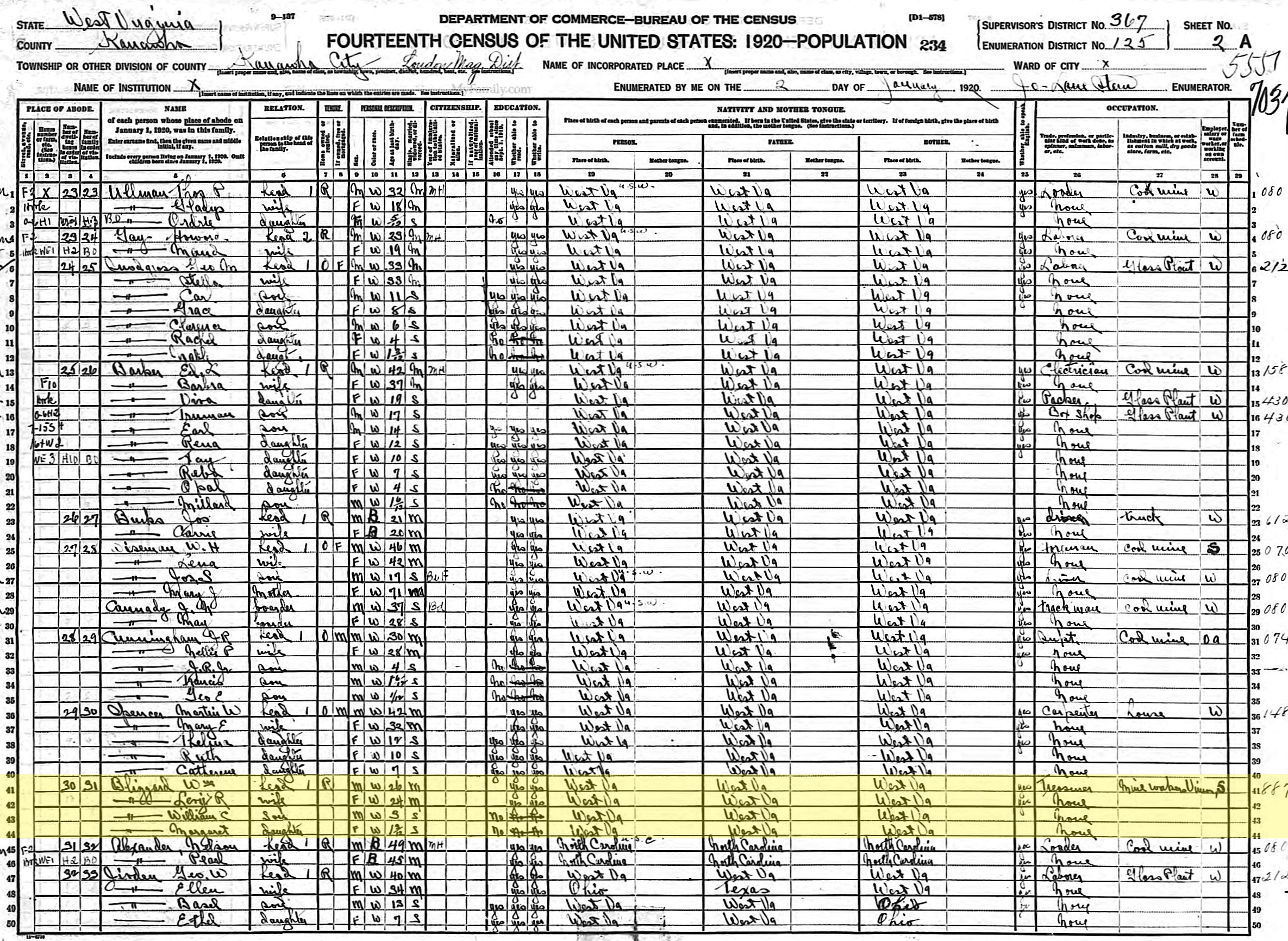 1920 United States Federal Census - Wm Blizzard