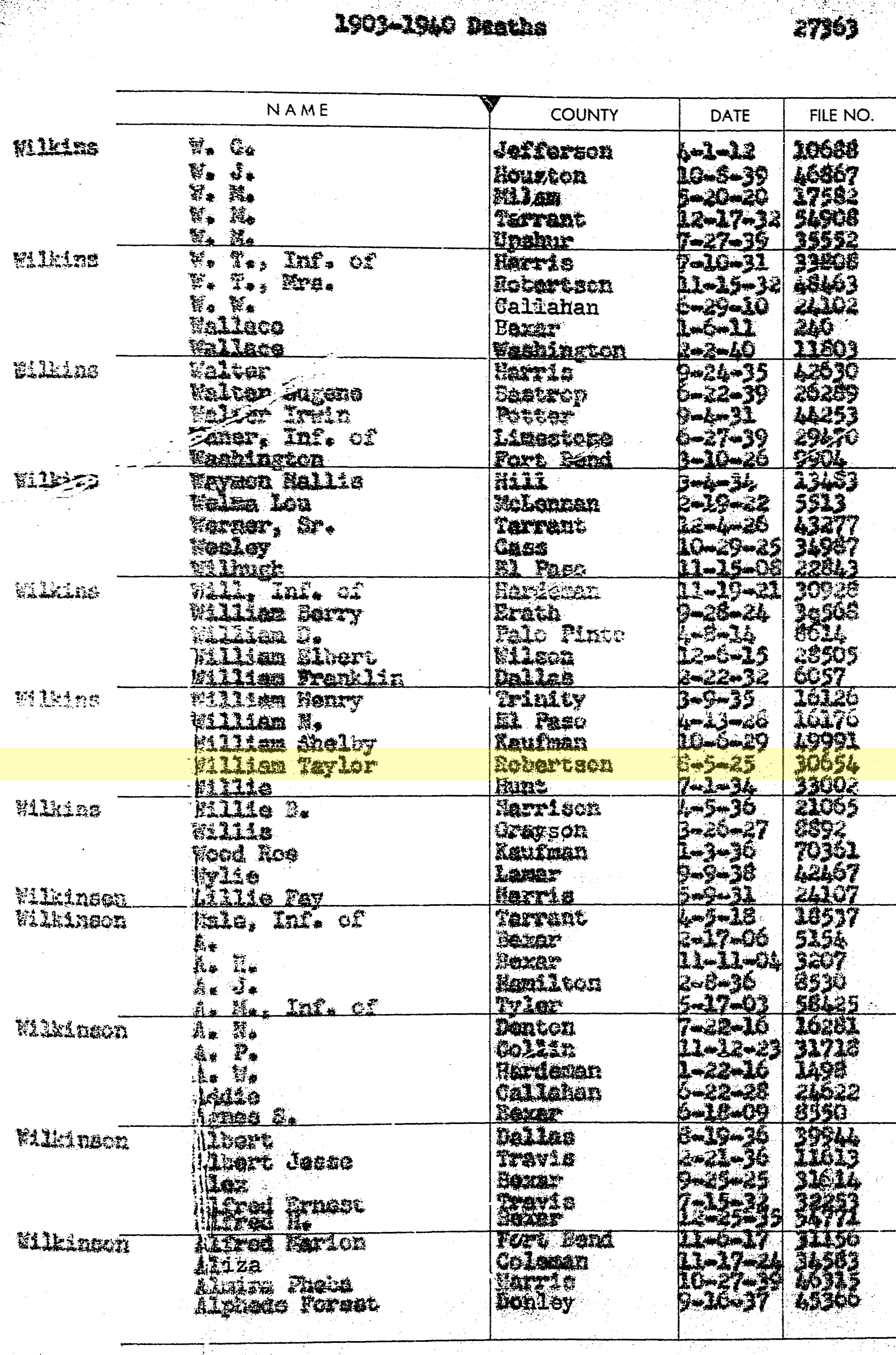 Texas Death Index 1903-2000 - William Taylor Wilkins