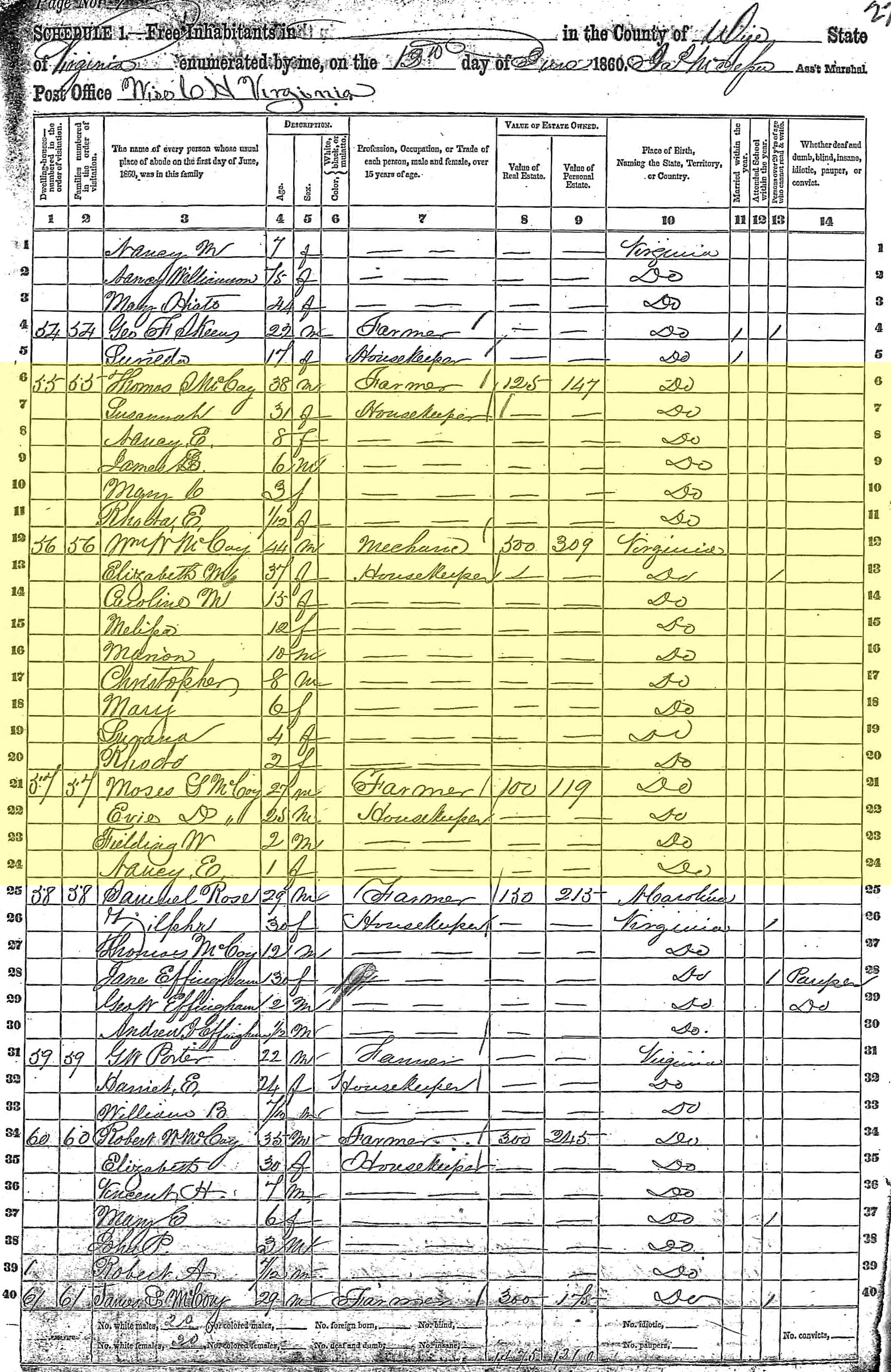 1860 United States Federal Census - Moses L McCoy