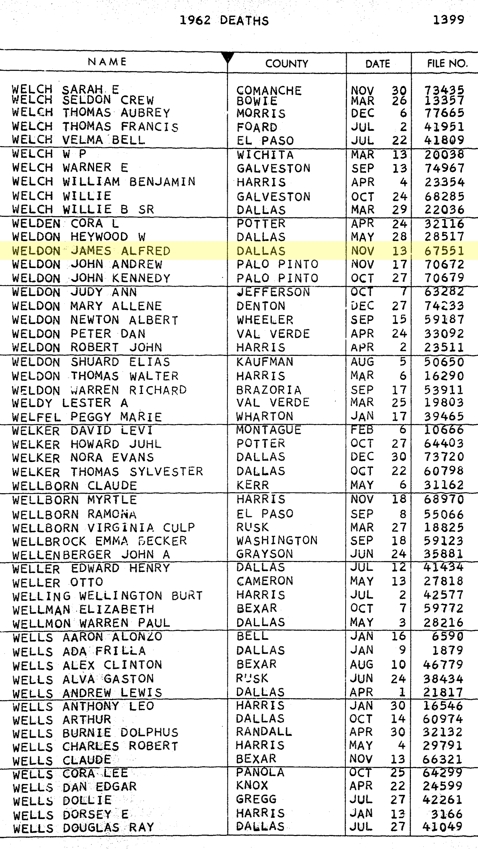 Texas Death Index 1903-2000 - James Alfred Weldon
