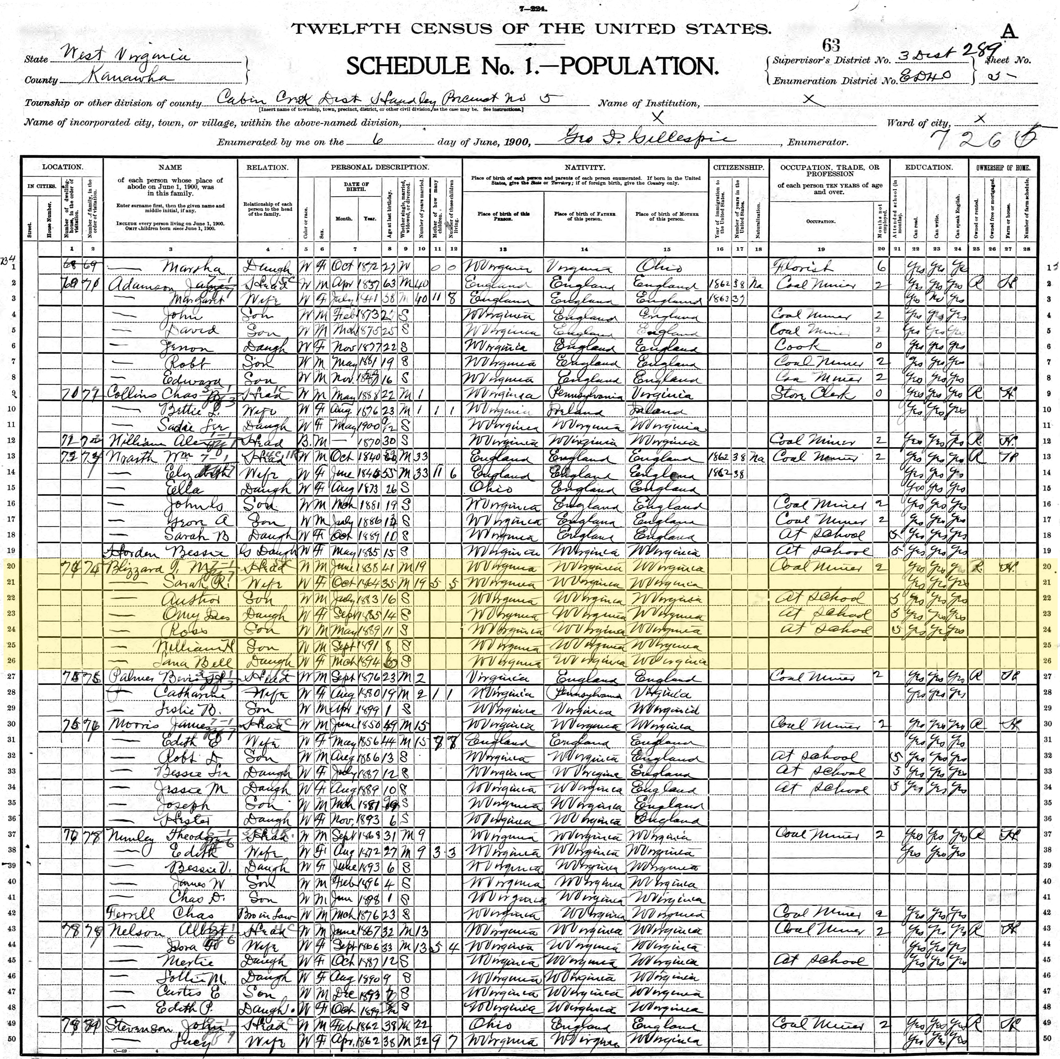 1900 United States Federal Census - Omy Ines Blizzard