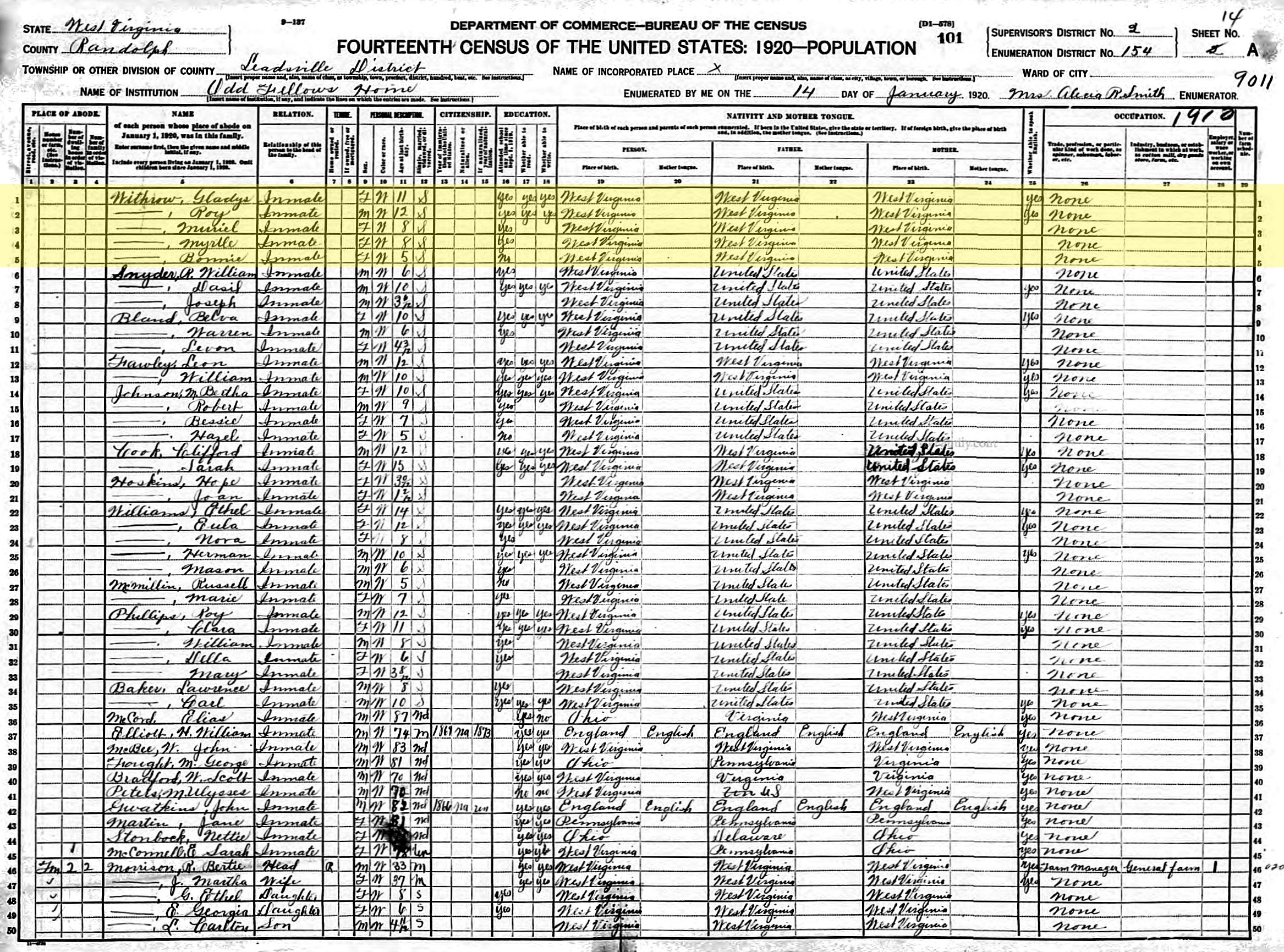 1920 United States Federal Census - Myrtle Withrow