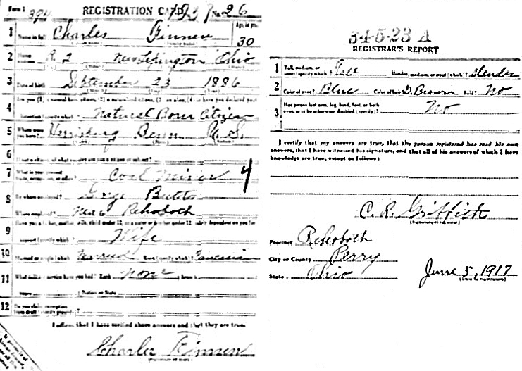 World War I Draft Registration Cards 1917-1918 - Charles Finnen