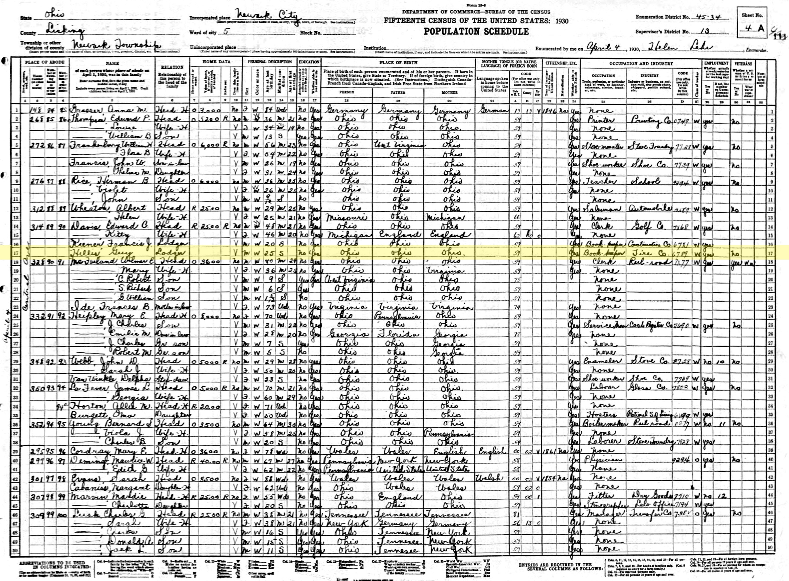 1930 United States Federal Census - Guy Hillis