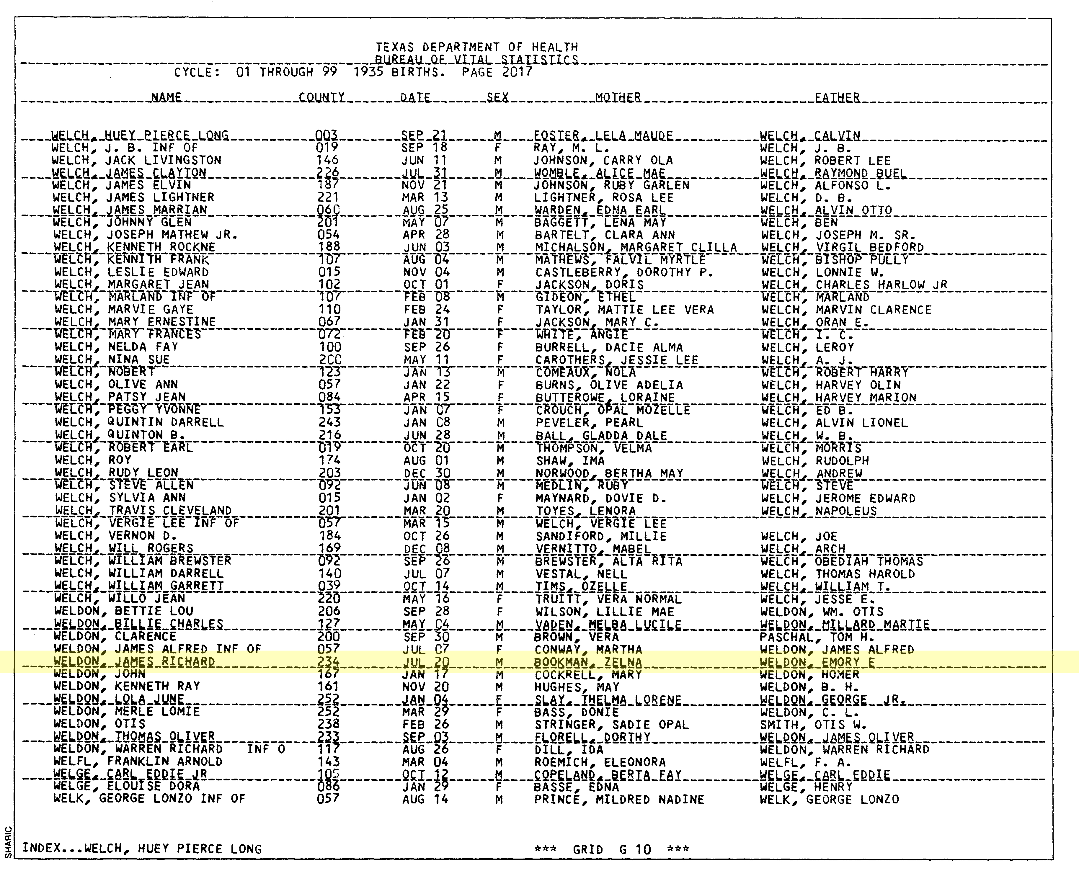 Texas Birth Index 1903-1997 - James Richard Weldon
