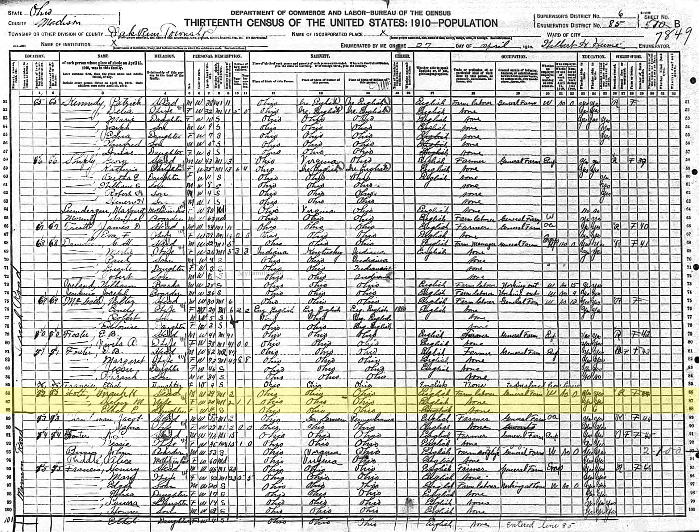 1910 United States Federal Census - Frank H Holt