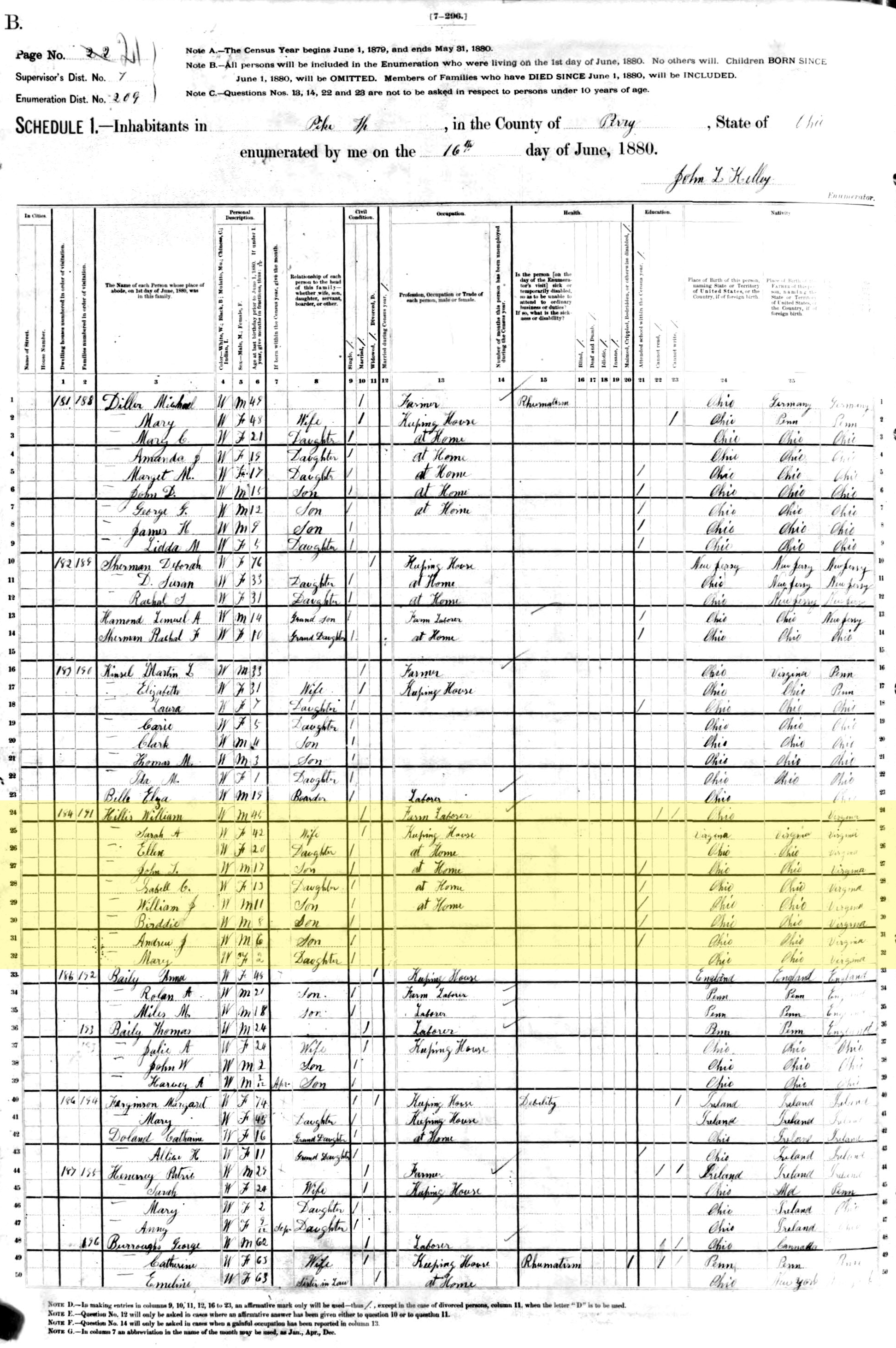 1880 United States Federal Census - William Hillis