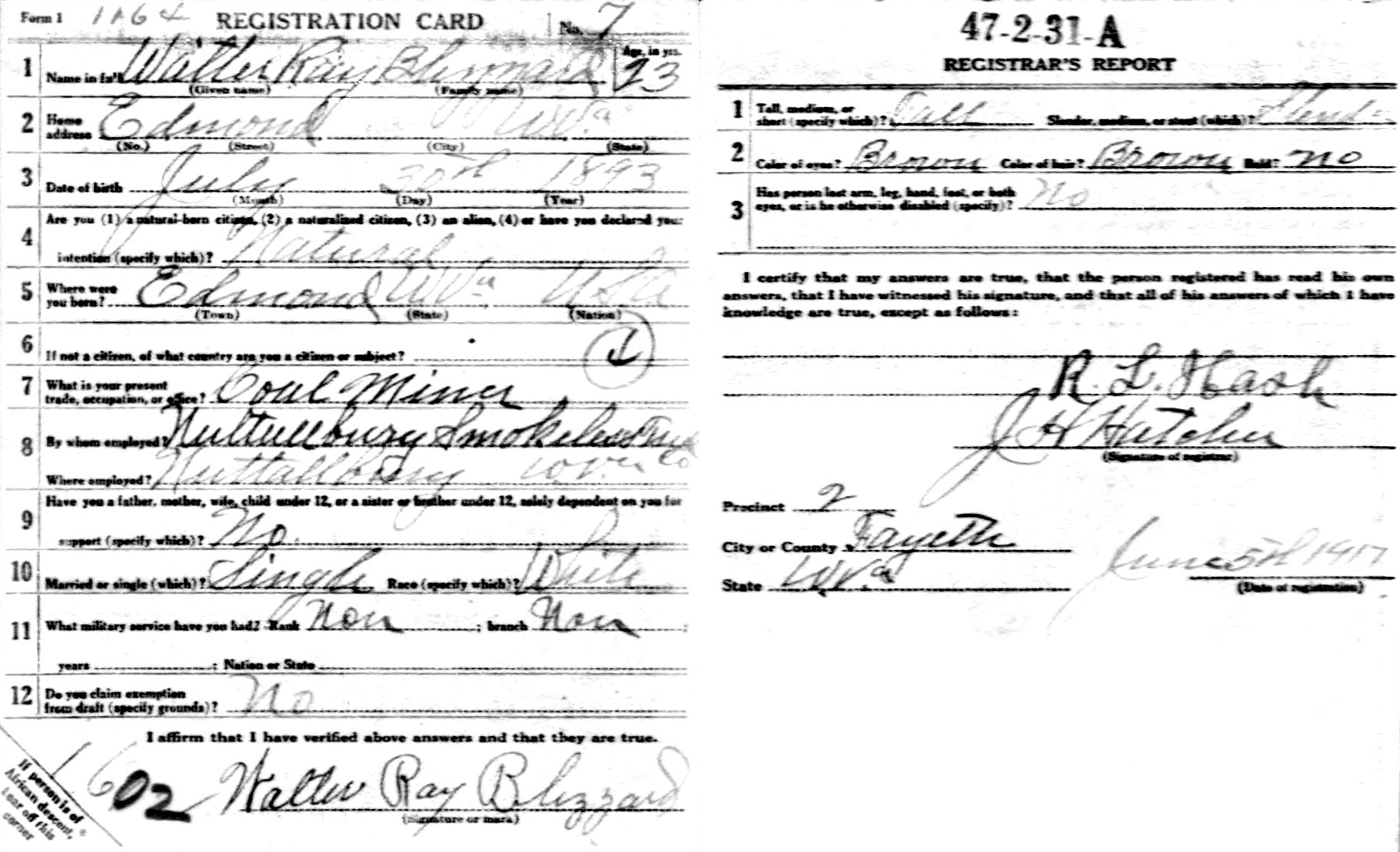 World War I Draft Registration Cards 1917-1918 - Walter Ray Blizzard