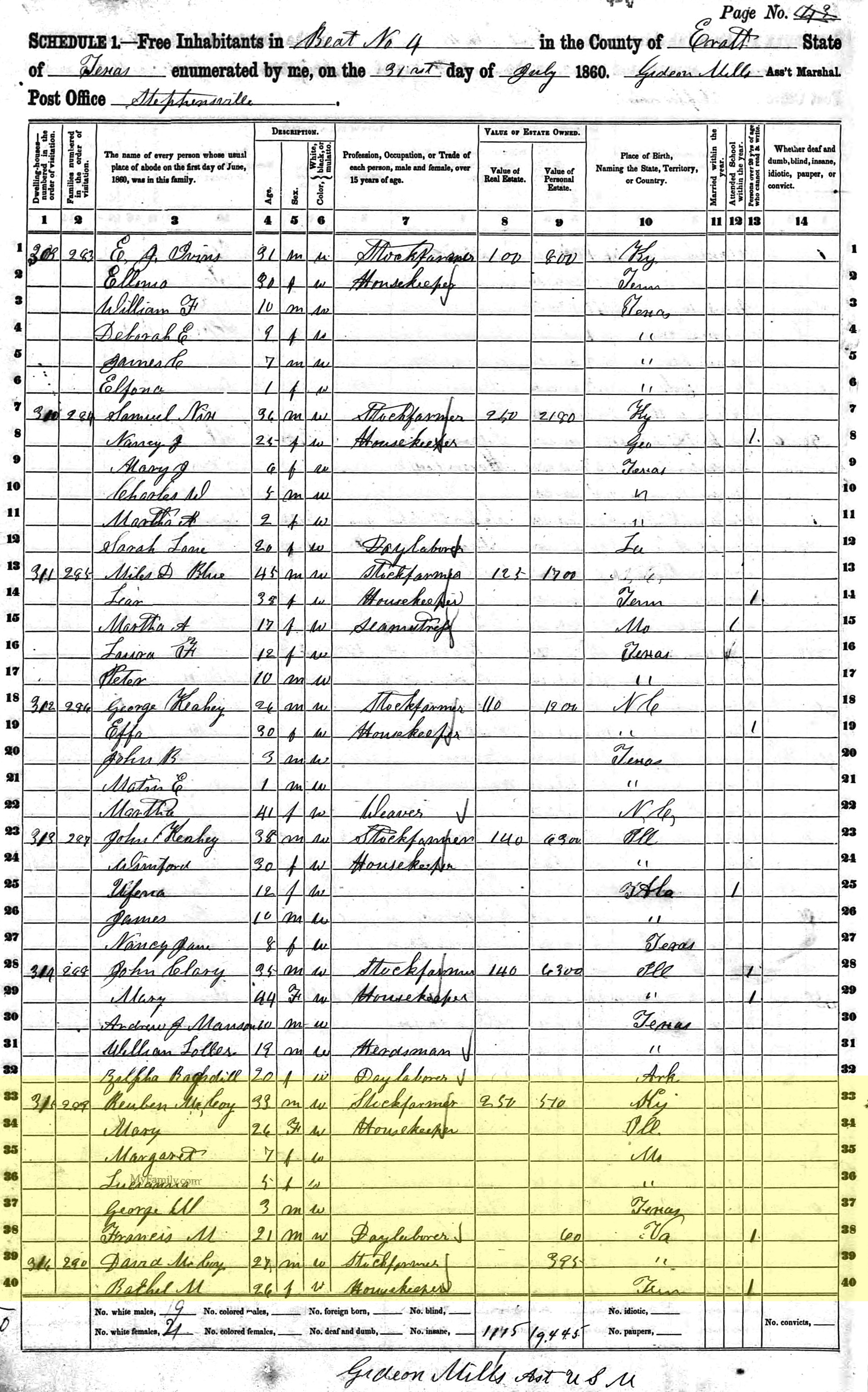 1860 United States Federal Census - Reuben McCoy