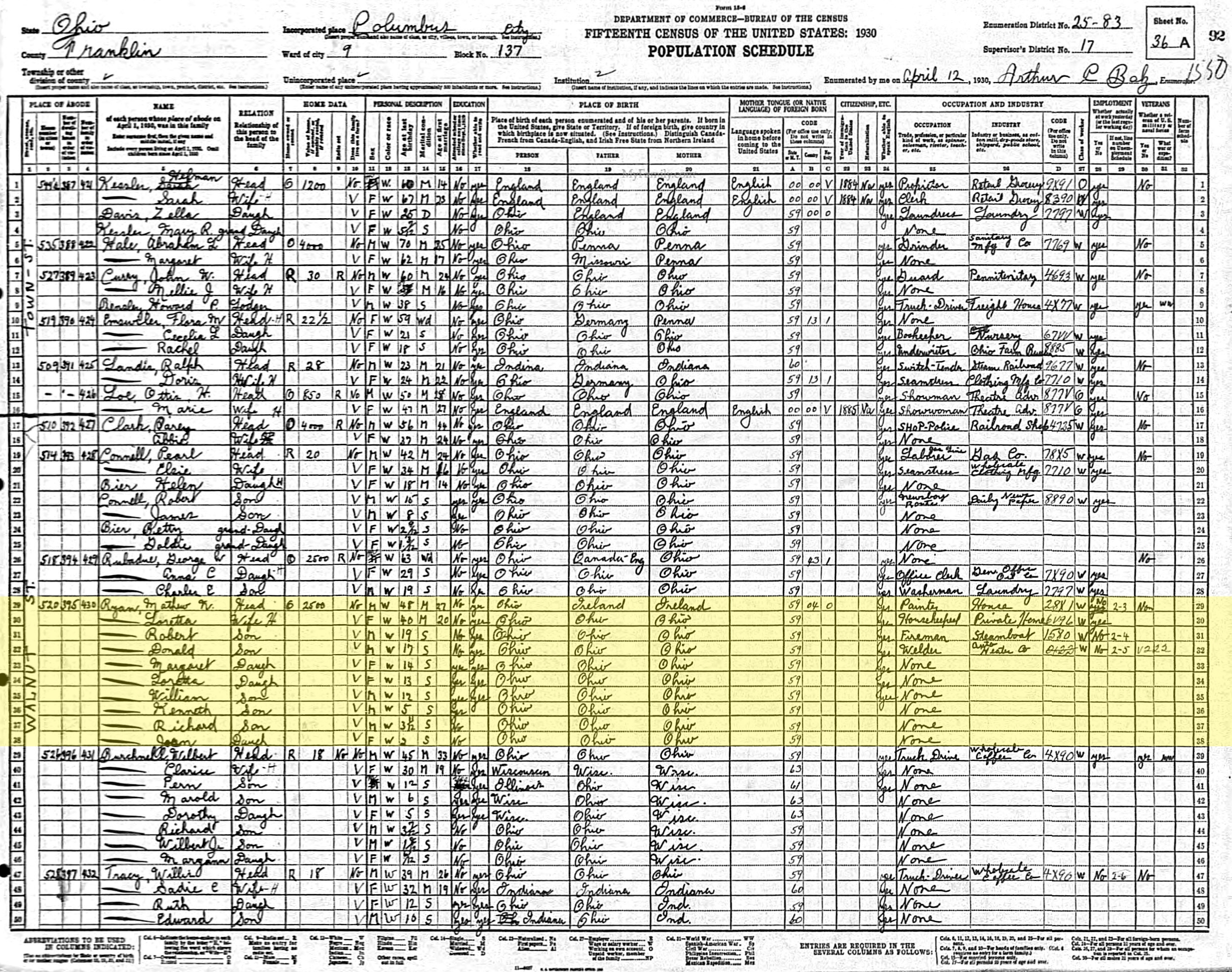 1930 United States Federal Census - Mathew N Ryan