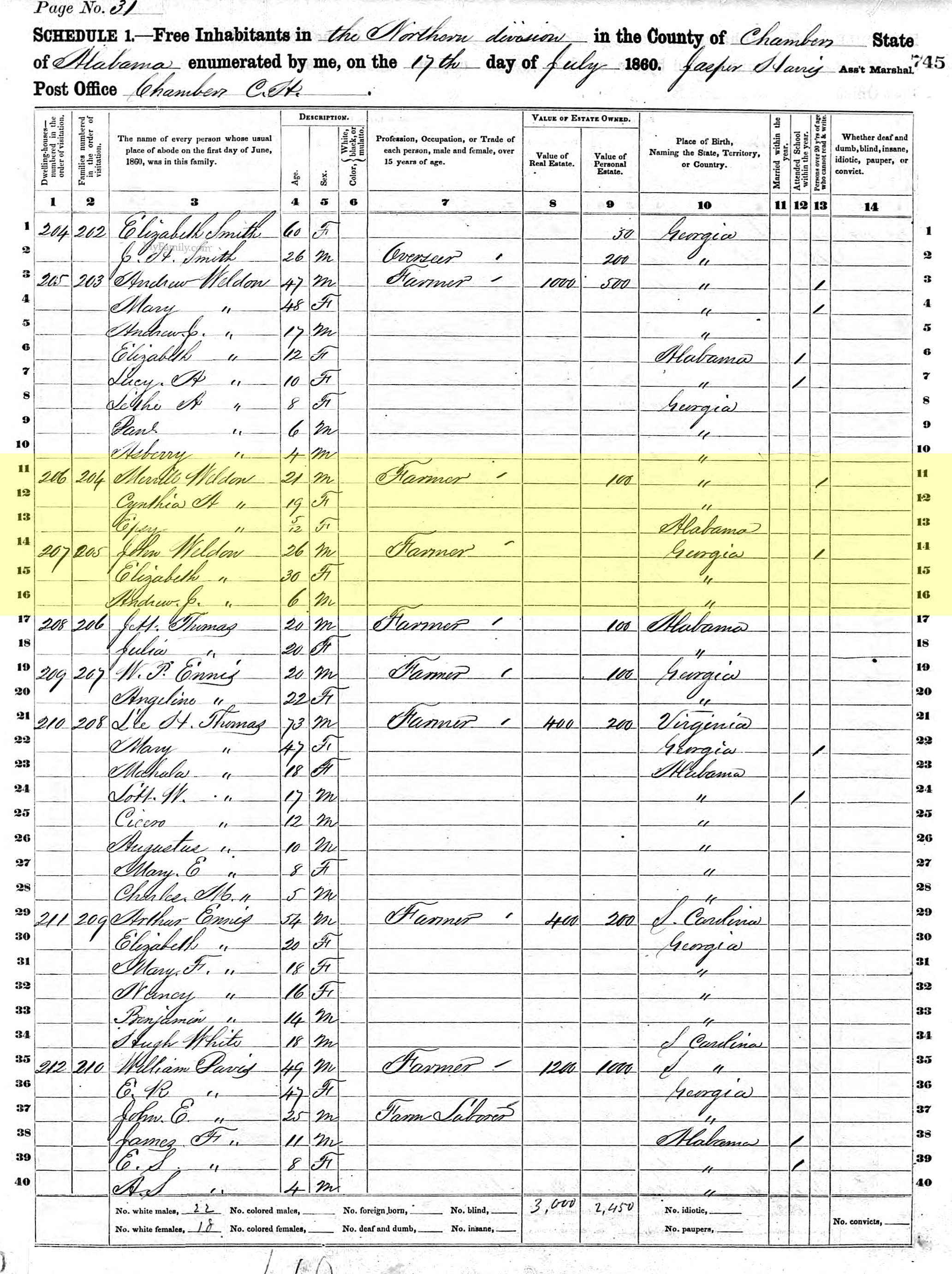 1860 United States Federal Census - Andrew Weldon