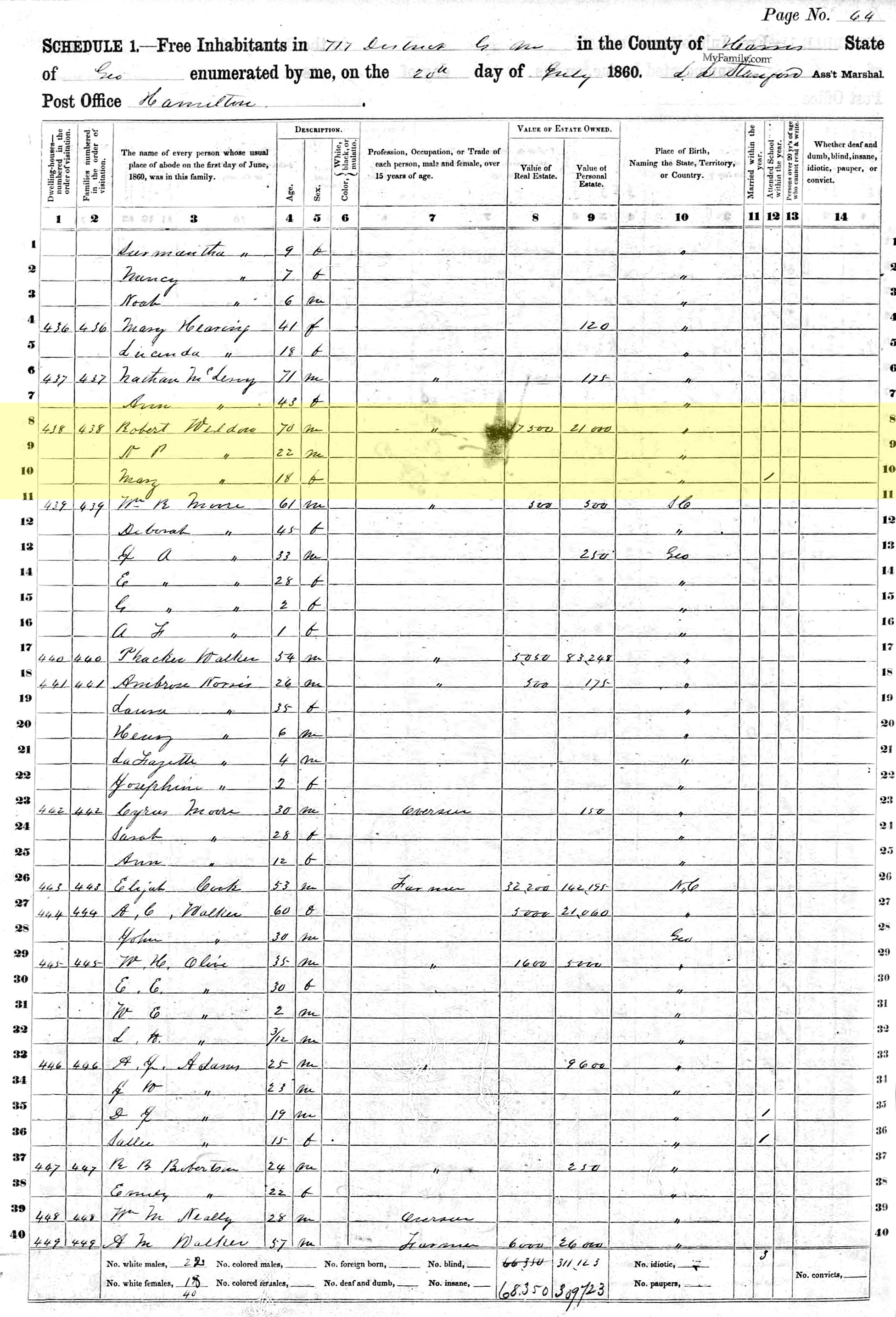 1860 United States Federal Census - Robert Weldon