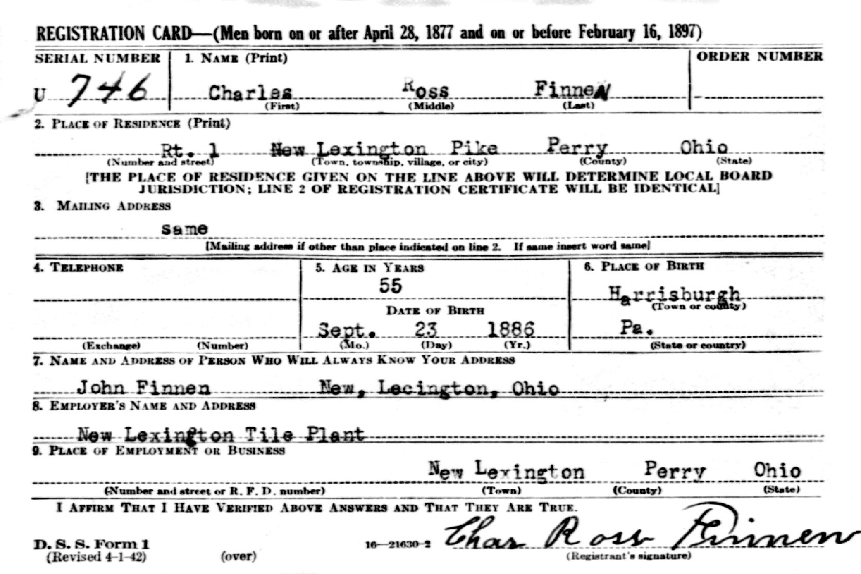 U.S World War II Draft Registration Cards 1942 - Charles Ross Finnen