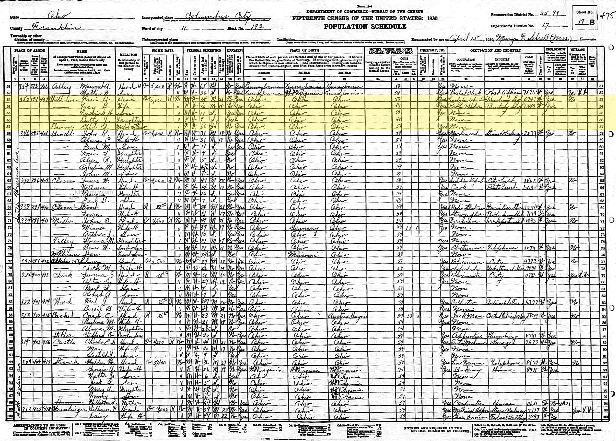 1930 United States Federal Census - Fred H Wilhelm