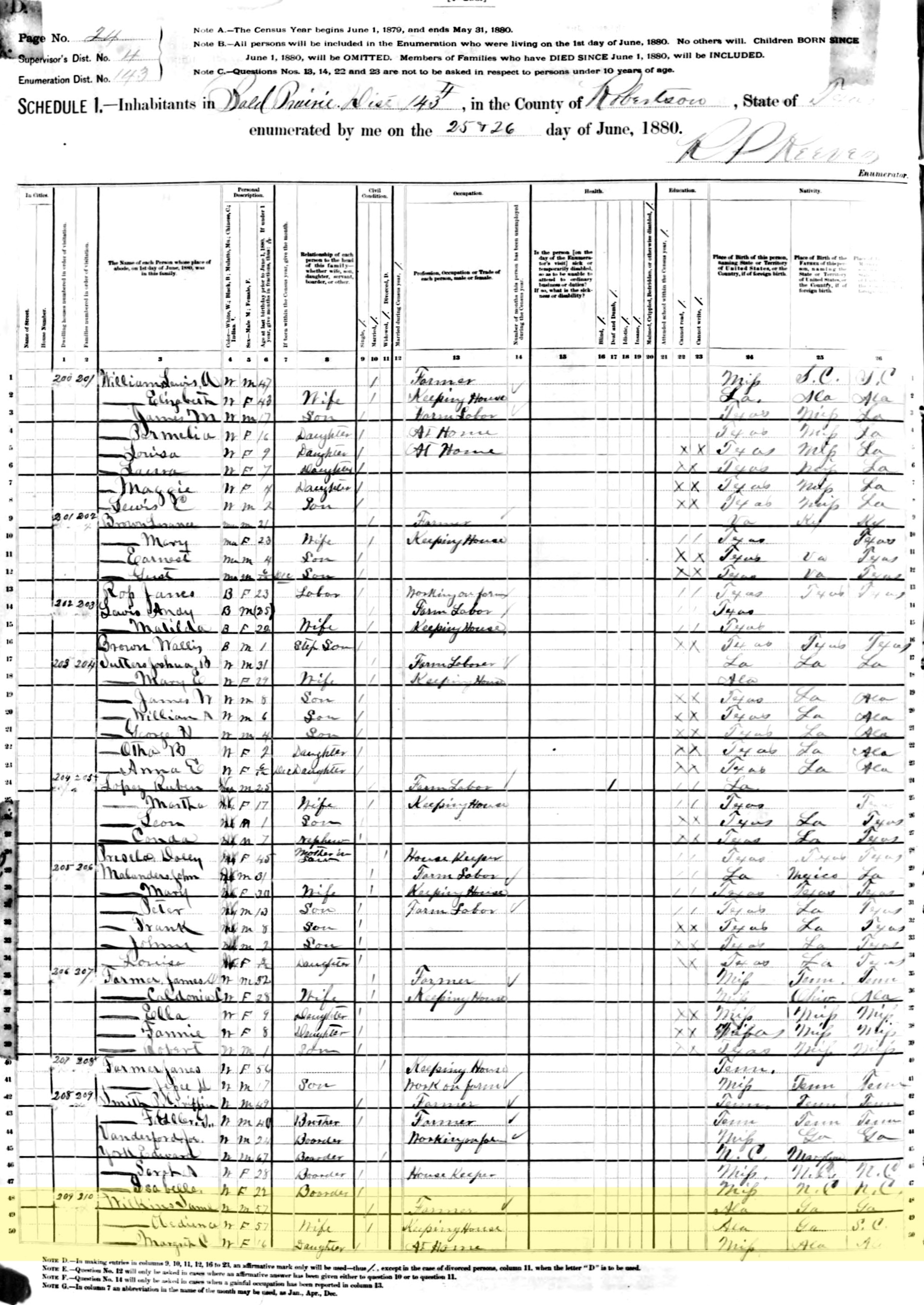 1880 United States Federal Census - Saml Wilkins