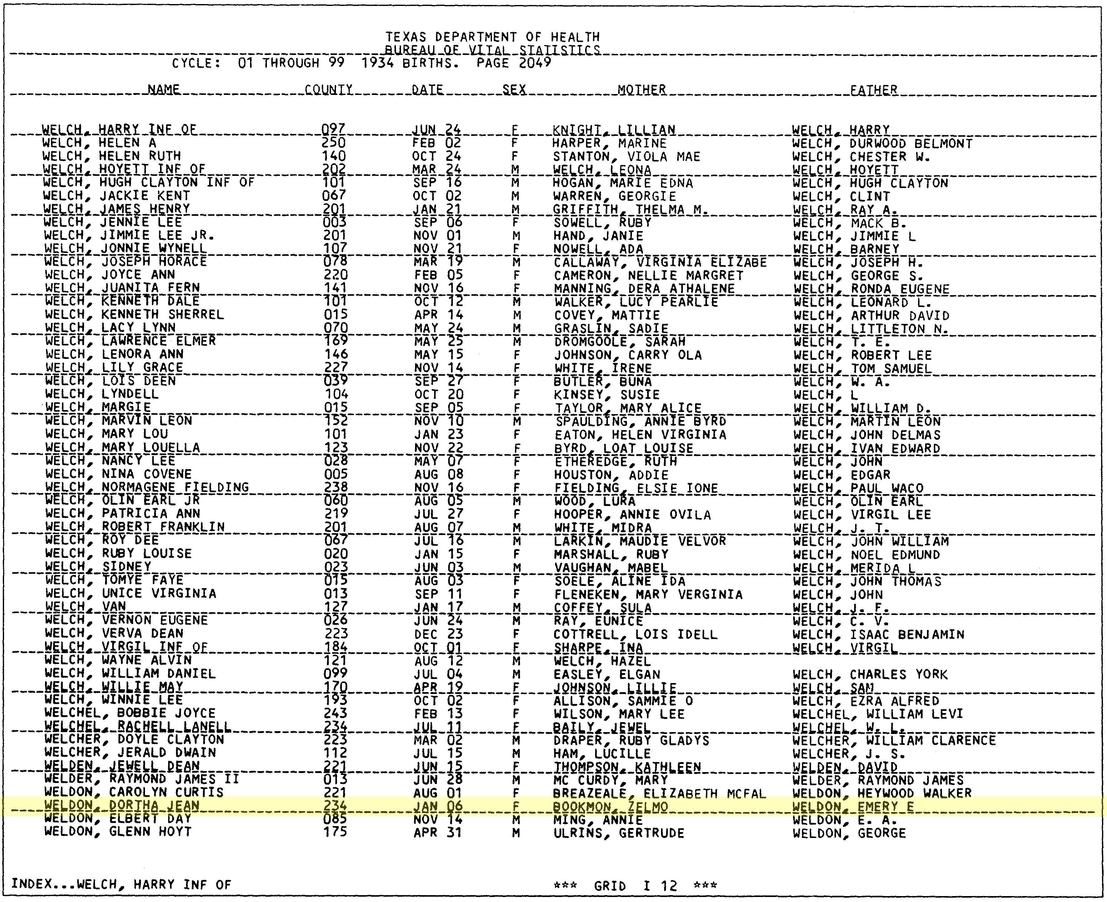 Texas Birth Index 1903-1997 - Dortha Jean Weldon