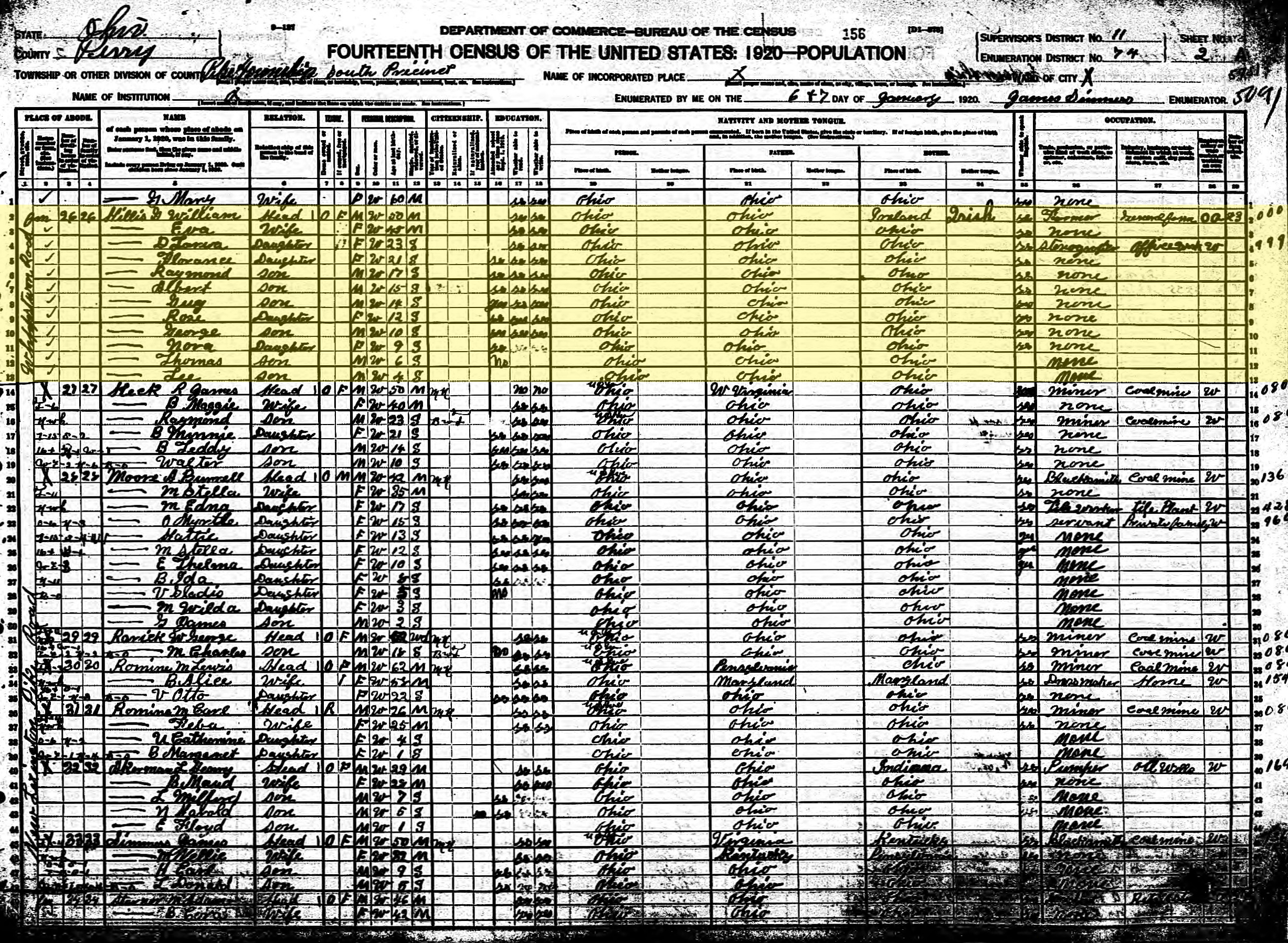 1920 United States Federal Census - G William Hillis