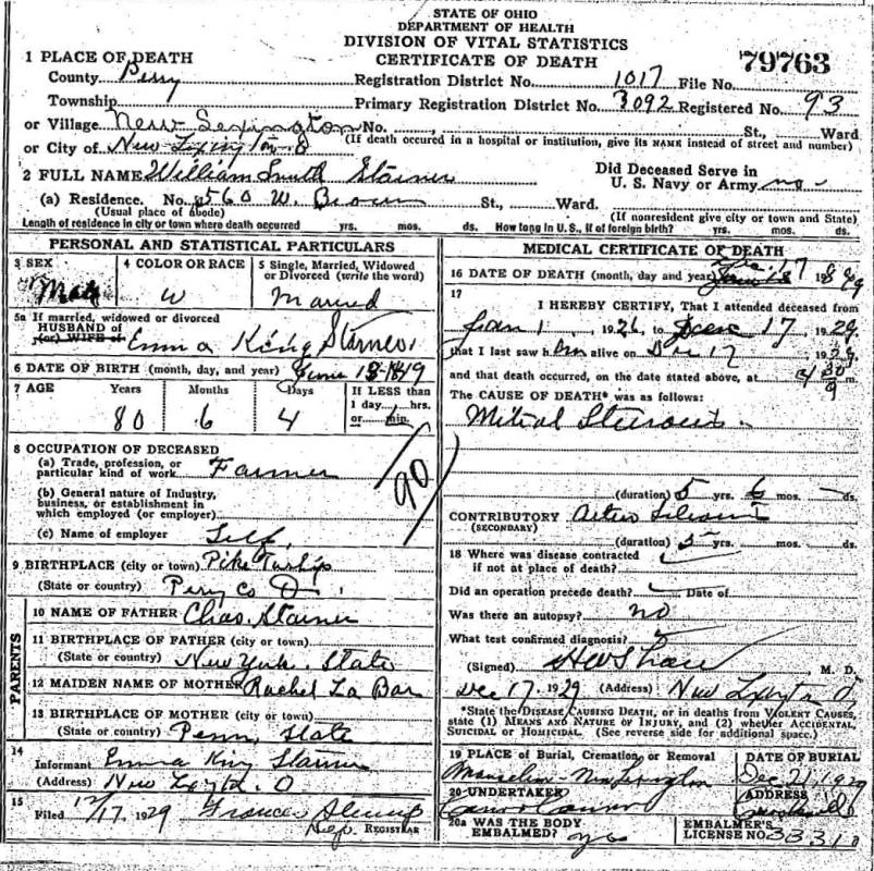 Death Certificate William Starner